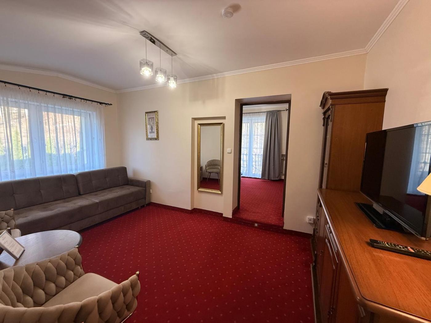 Apartament. This apartment comprises 1 living room, 1 separate bedroom and 1 bathroom with a shower and a hairdryer. The apartment features carpeted floors, a seating area with a flat-screen TV, a wardrobe, an electric kettle as well as garden views. The unit offers 2 beds. Apartament - 3 osobowy. Powierzchnia pokoju ok.: 36 mkw. ;