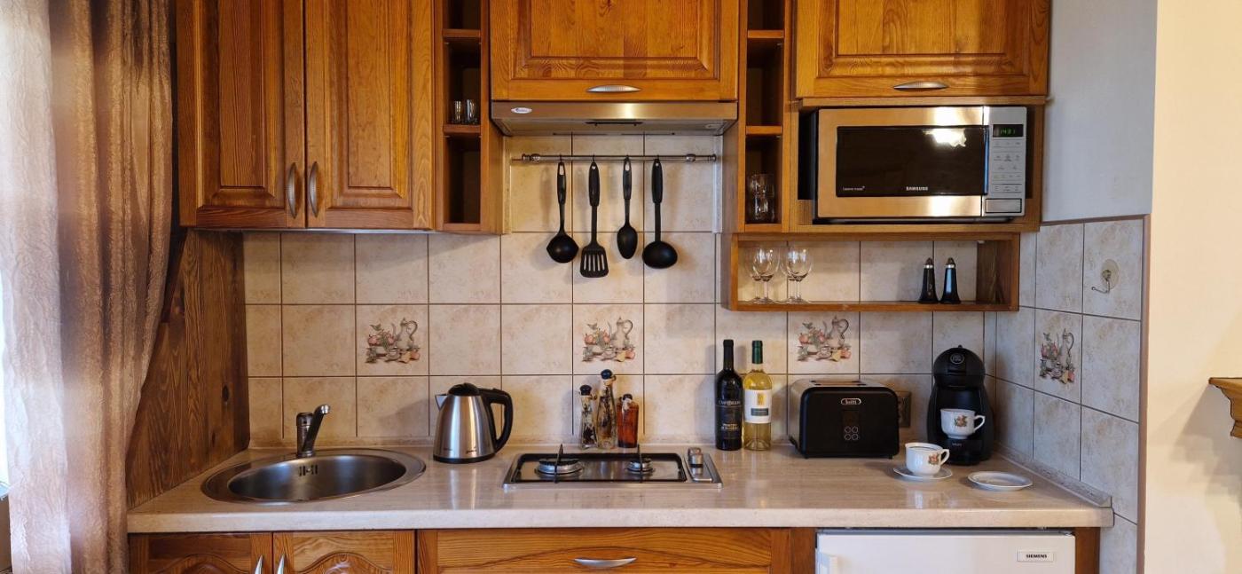 Apartament z widokiem na ogród. This apartments standout feature is the fireplace. Boasting a private entrance, this apartment includes 1 living room, 1 separate bedroom and 1 bathroom with a shower and a hairdryer. In the fully equipped kitchen, guests will find a stovetop, a refrigerator, kitchenware and a microwave. Featuring a terrace with garden views, this apartment also offers a tea and coffee maker and a flat-screen TV. The unit has 2 beds. Apartament - 2 osobowy. Powierzchnia pokoju ok.: 45 mkw. ;